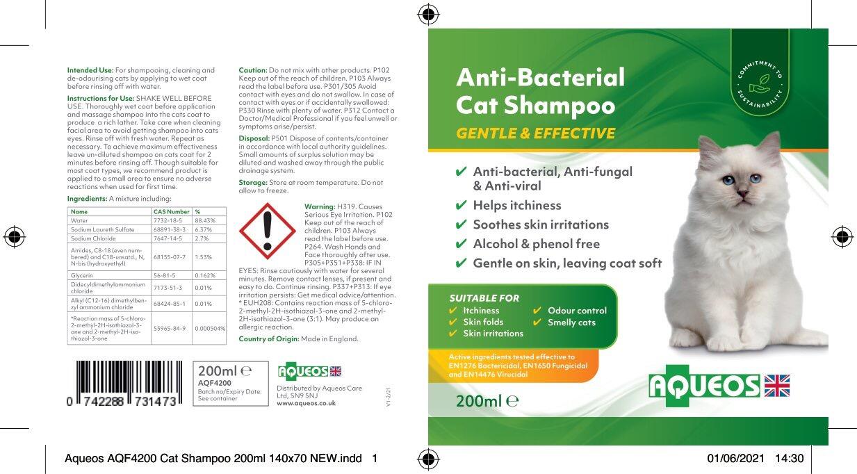 Anti-Viral, Anti-Bacterial and Anti-Fungal Cat Shampoo.