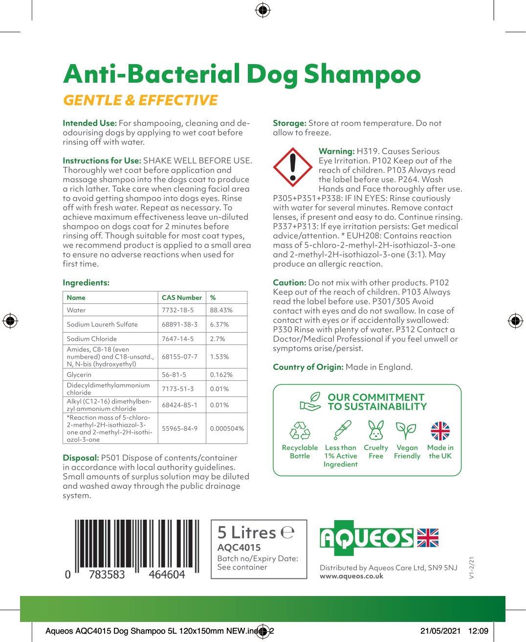 Anti-Bacterial/Anti-Itch Dog Shampoo 5L