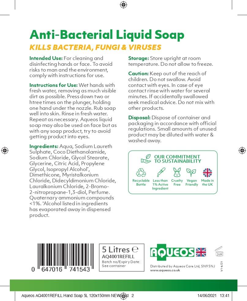 The Aqueos Hand Soap is gentle and disinfects hands to EN test standards without leading to skin irritation. It will kill 99.999% of viruses, bacteria and fungi keeping your hands germ free. As our solution does not contain alcohol, it will not dry out your hands and many of our customers comment that it softens them as well.